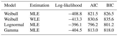 Lawless, J. F.: Statistical Models and Methods for Lifetime Data, 2nd Edn., Wiley, Hoboken, NJ, https://doi.org/10.1002/9781118033005, 2003.