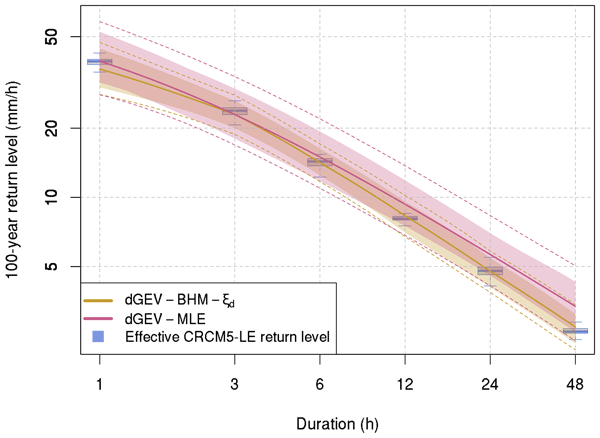 Bayesian hierarchical modelling of intensity-duration-frequency curves using a climate model large ensemble